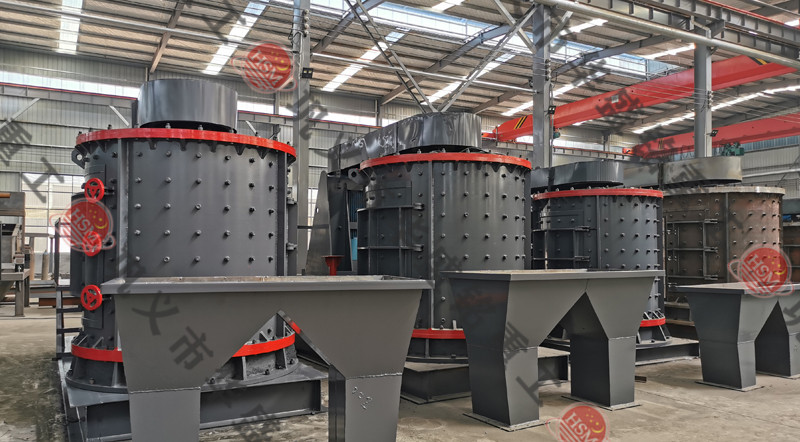 物料由機器上部垂直落入高速旋轉的葉輪內,在高速離心力的作用下,與另一部分以傘狀形式分流在葉輪四周的物料產生高速撞擊與粉碎,物料在互相撞擊后,又會在葉輪和機殼之間以物料形成渦流多次的互相撞擊、摩擦而粉碎,從下部直通排出,形成閉路多次循環,由篩分設備控制達到所要求的成品粒度。